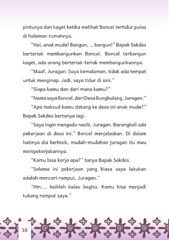 pekerjaan di desa ini.” Boncel menjelaskan. Di dalam