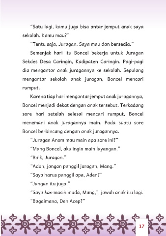 Semenjak hari itu Boncel bekerja untuk Juragan