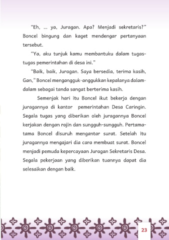 “Eh, … ya, Juragan. Apa? Menjadi sekretaris?”